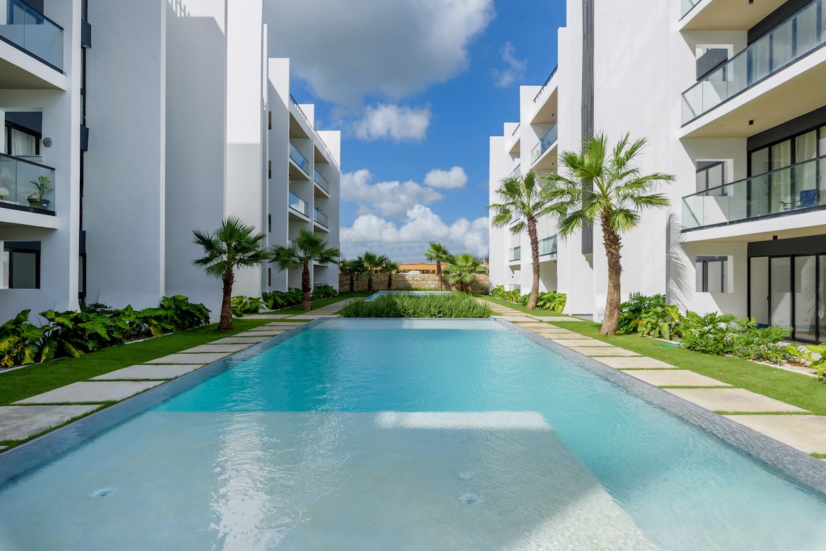 Bienvenue dans notre magnifique appartement de 120 m 2 à Dominicus, cathédrale. Rep. où la détente et le luxe se rencontrent. Notre salon spacieux avec cuisine ouverte invite à la détente et au plaisir. Face aux piscines et au jardin luxuriant, le balcon offre une vue imprenable qui anime vos sens et vous offre des moments de tranquillité inoubliables. Découvrez la magie des Caraïbes dans notre refuge accueillant qui allie confort et élégance en parfaite harmonie.