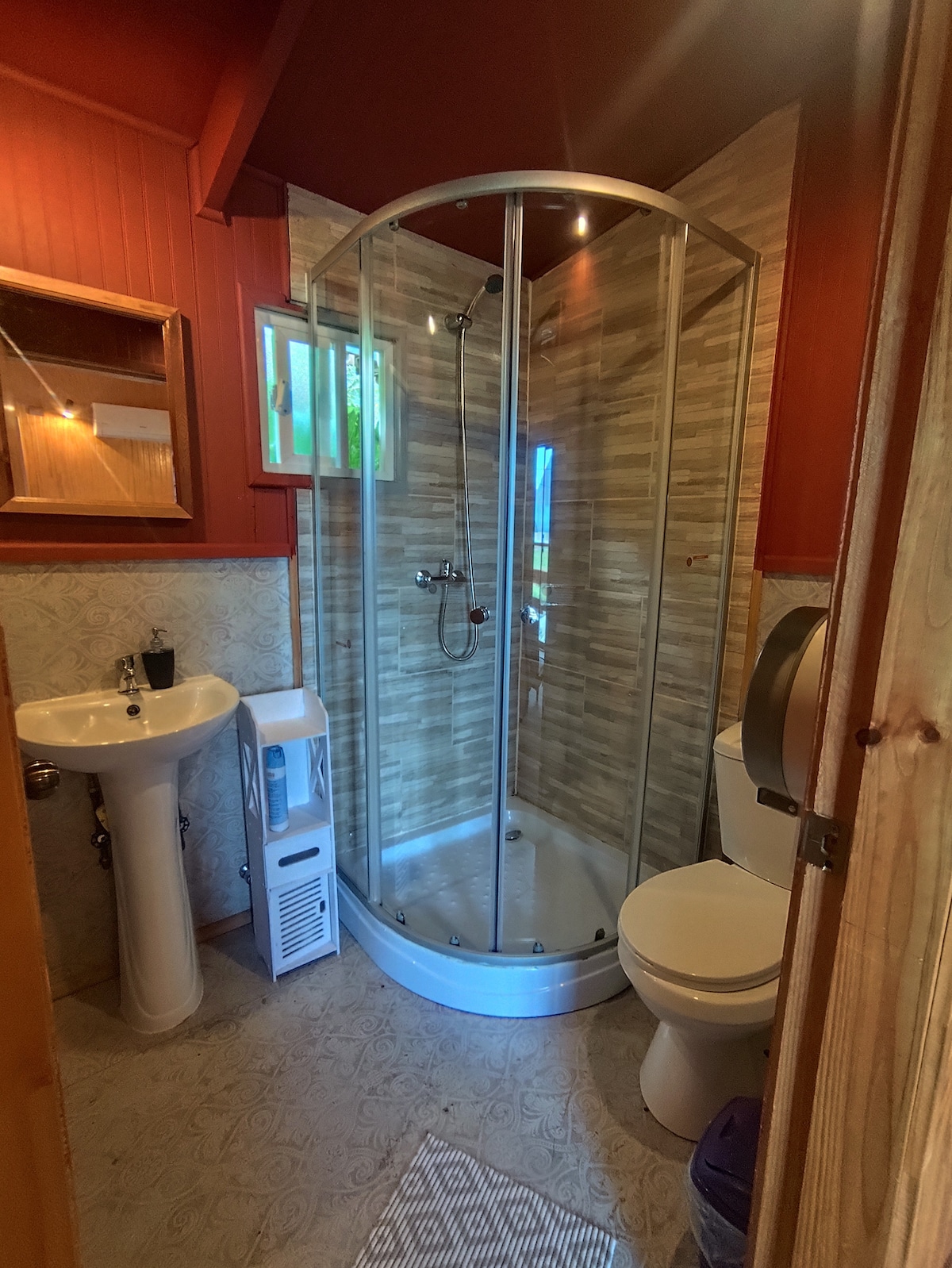 Venez séjourner dans une micro-maison de 26 m² spécialement conçue et fabriquée à la main par nous. La Pichi est parfaite pour deux personnes avec un lit double et peut également accueillir une troisième personne sur un pouf dans le salon. L'espace principal est le salon avec un poêle à bois et une kitchenette, offrant une vue panoramique sur le lagon. Entièrement équipé, il dispose d'un espace commun avec un foyer et un barbecue, et d'un spa rempli d'eau de pluie que nous recueillons de nos propres toits, qui est réservé séparément.
