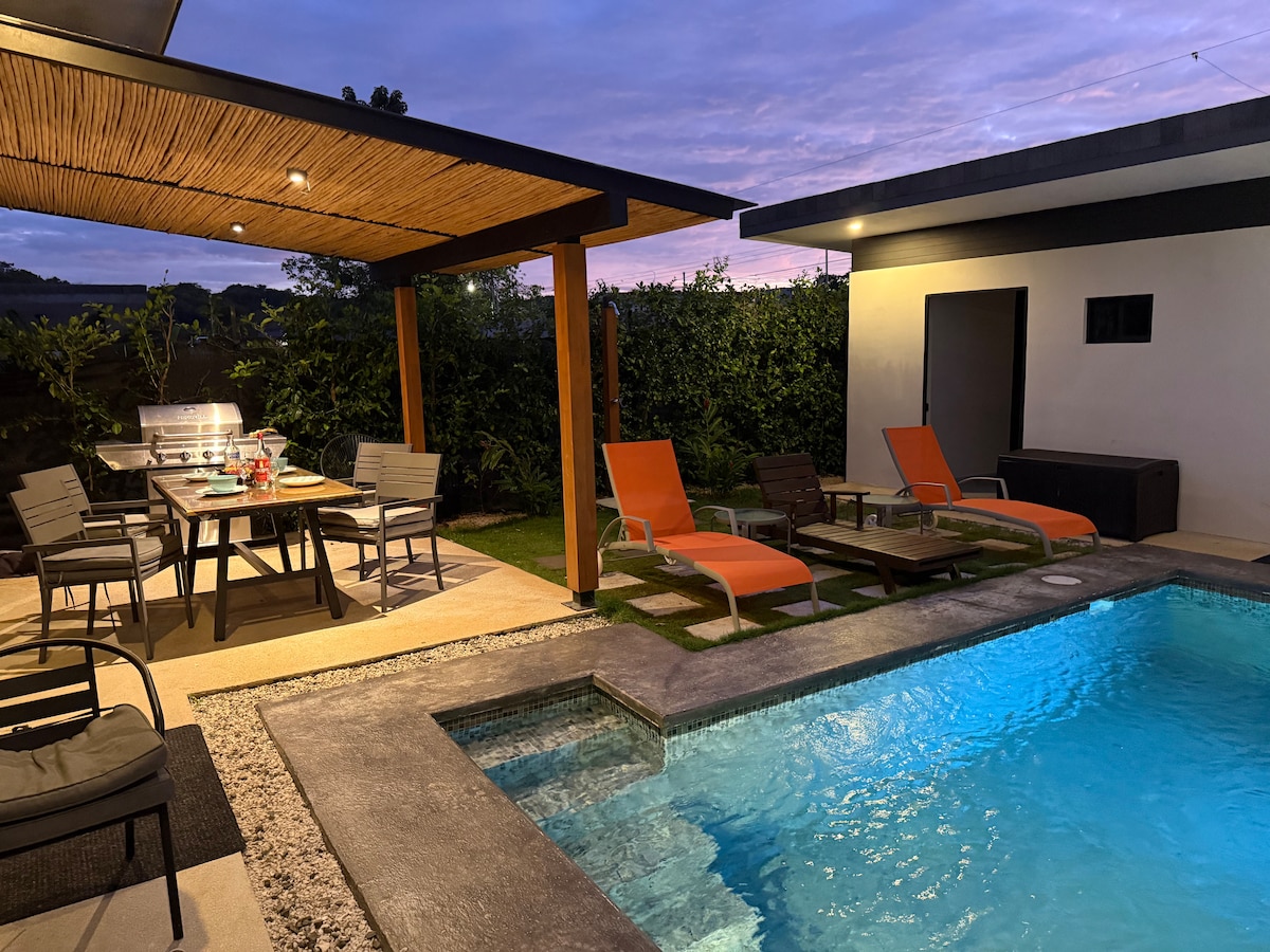 Nouvellement rénovée. Séjournez dans une superbe villa avec piscine à débordement privée, située dans une communauté sécurisée, proche des plus belles plages du Costa Rica. Entièrement rénovée en 2025, elle offre confort moderne et vue imprenable. • 2 chambres climatisées avec salles de bain privées • Espace ouvert avec cuisine équipée et salon cosy • Salle à manger extérieure pour admirer des couchers de soleil spectaculaires • Wi-Fi, alarme et parking clôturé