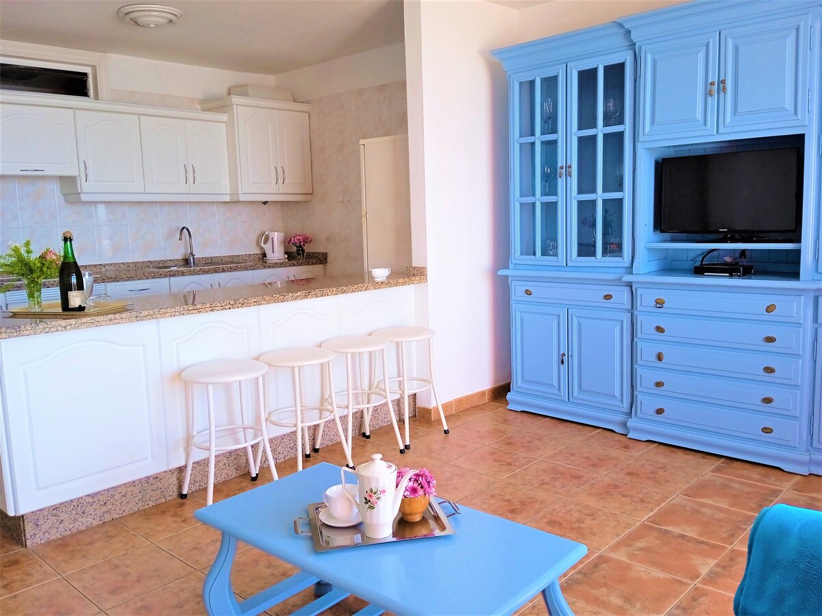 Blue Suite confortable et entièrement équipée face à la mer, avec accès direct à la plage à 10 m, idéale pour les amoureux de la mer. Très lumineux et avec des vues incroyables. Endroit très calme et touristique du sud de Tenerife. Location de vélos, excursions, supermarché, restaurants, pharmacie, boulangerie, centre commercial Rosa Center, à proximité. Détendez-vous et déconnectez dans ce logement calme et élégant.