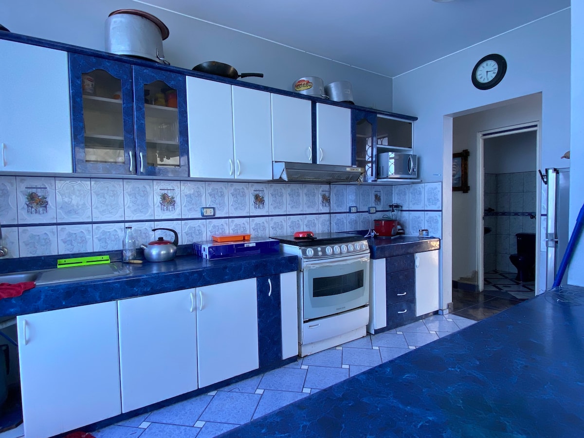 Maison privée de 200m2 dans la station balnéaire de Santa Rosa. Détendez-vous dans notre piscine tempérée unique dans le quartier. Profitez d'un anniversaire ou d'un déjeuner en famille différent sur notre terrasse donnant sur jardin ou travaillez via home office dans une ambiance détendue et avec connexion wifi. Nous avons un beau jardin, une nuit de feux de camp, une aire de jeux, un bar à boissons, un barbecue, un garage et une smart tv. Meublée, ustensiles et commode cuisine. Vous pouvez venir avec vos animaux de compagnie, nous vous attendons.