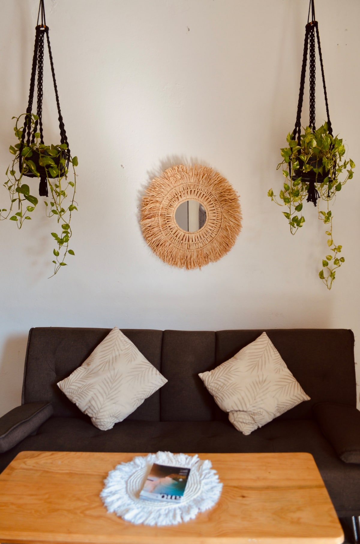 Appartement spacieux et lumineux au dernier étage avec 2 lits queen super confortables, climatisation dans la chambre et ventilateurs dans le salon et la cuisine. Il dispose d'une cuisine équipée, d'un salon confortable et d'un balcon avec vue sur les palmiers. Vous êtes à seulement 2 min de la plage et à 1 min des cafés, des magasins et des restaurants. Profitez de la cour commune avec des hamacs, des arbres fruitiers, un barbecue et un espace de pesas artisanales. Idéal pour se détendre, surfer ou travailler à distance avec de bonnes vibrations. 🌴