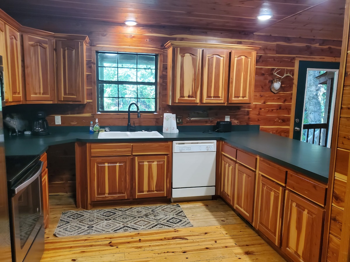 Évadez-vous dans cette charmante cabane artisanale surplombant les montagnes de Heber Springs, l'Arkansas et le lac Greers Ferry. Niché au sommet de Round Mountain, vous trouverez le calme et la tranquillité et une vue que vous pourrez admirer pendant des jours. Une route panoramique en bas de la montagne et vous arriverez dans le centre-ville de Heber Springs. Vous êtes à une courte distance d'un certain nombre de sentiers, de cascades, des marinas, de la plage de sable, de l'accès au lac et de magasins pratiques.