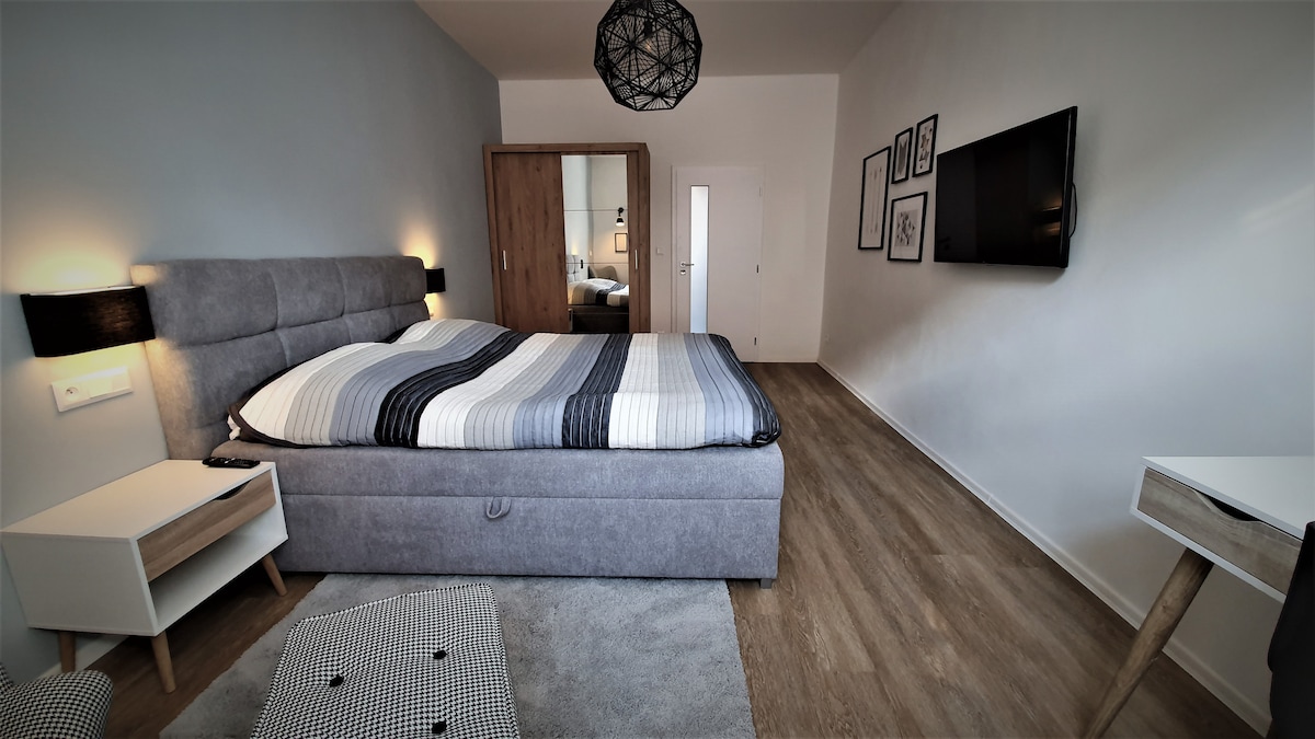 Bienvenue dans notre bel appartement confortable et entièrement meublé de 55 m² avec balcon, idéal pour les particuliers, les couples ou les familles à la recherche d'une retraite paisible au cœur de la ville, où vous vous sentirez comme chez vous. L'appartement est situé au 5e étage avec une orientation orientée ouest, vous permettant de profiter de superbes couchers de soleil depuis le balcon. Une épicerie est idéalement située à seulement 50 mètres de l'immeuble. Nous parlons n'importe quel langauge et nous nous ferons un plaisir de vous aider pendant votre séjour