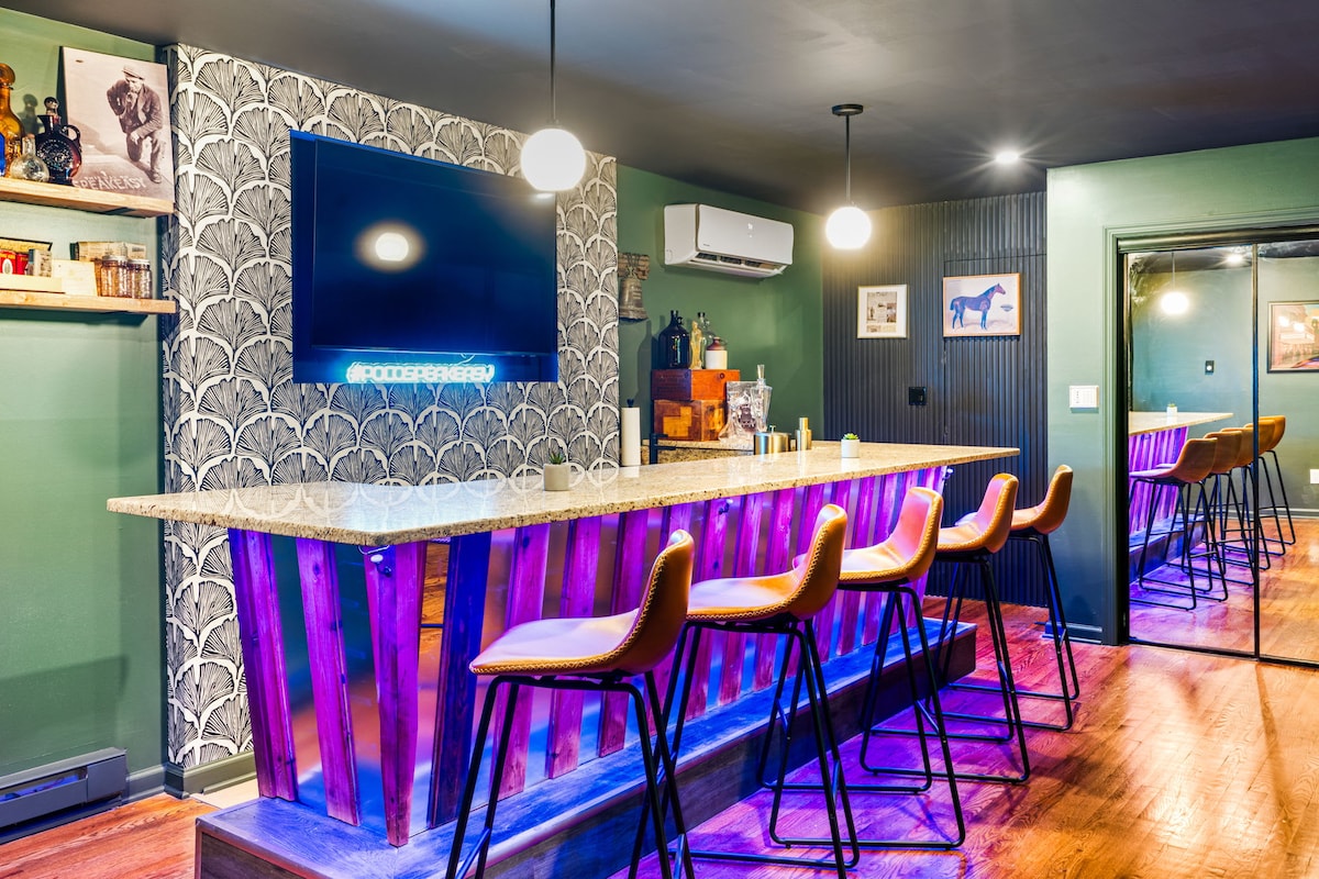 Bienvenue au Green Monster, une maison victorienne méticuleusement rénovée pour 16 personnes, tout en préservant son charme d'antan et ses équipements modernes. À quelques minutes de tout ce que les Poconos ont à offrir, cette maison est parfaite pour une retraite familiale. Les caractéristiques comprennent un toboggan intérieur qui mène à une salle de jeux, un jacuzzi extérieur, un foyer et un bar de sous-sol de style Prohibition pour les adultes. Découvrez le confort et les équipements d'un hôtel tout en vous sentant comme chez vous dans cette escapade unique !