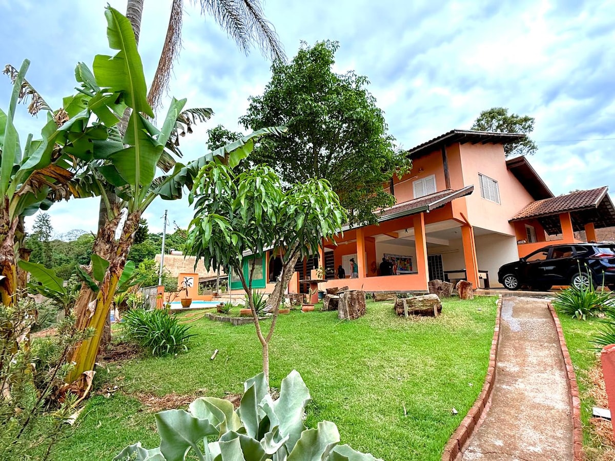 Entrez dans les sons de la nature en séjournant dans ce lieu unique, un ranch dans la ville, c'est vrai, il est situé dans l'un des principaux quartiers de Poços de Caldas, Jardim Hortências, avec 24 mille mètres carrés exclusivement pour vous, ici vous aurez une vue imprenable, et vos voisins seront des mini chèvres et une diversité d'oiseaux qui font un spectacle le matin, venez profiter de notre terrain de tennis Betch et d'un espace de loisirs avec un four à pizza au feu de bois