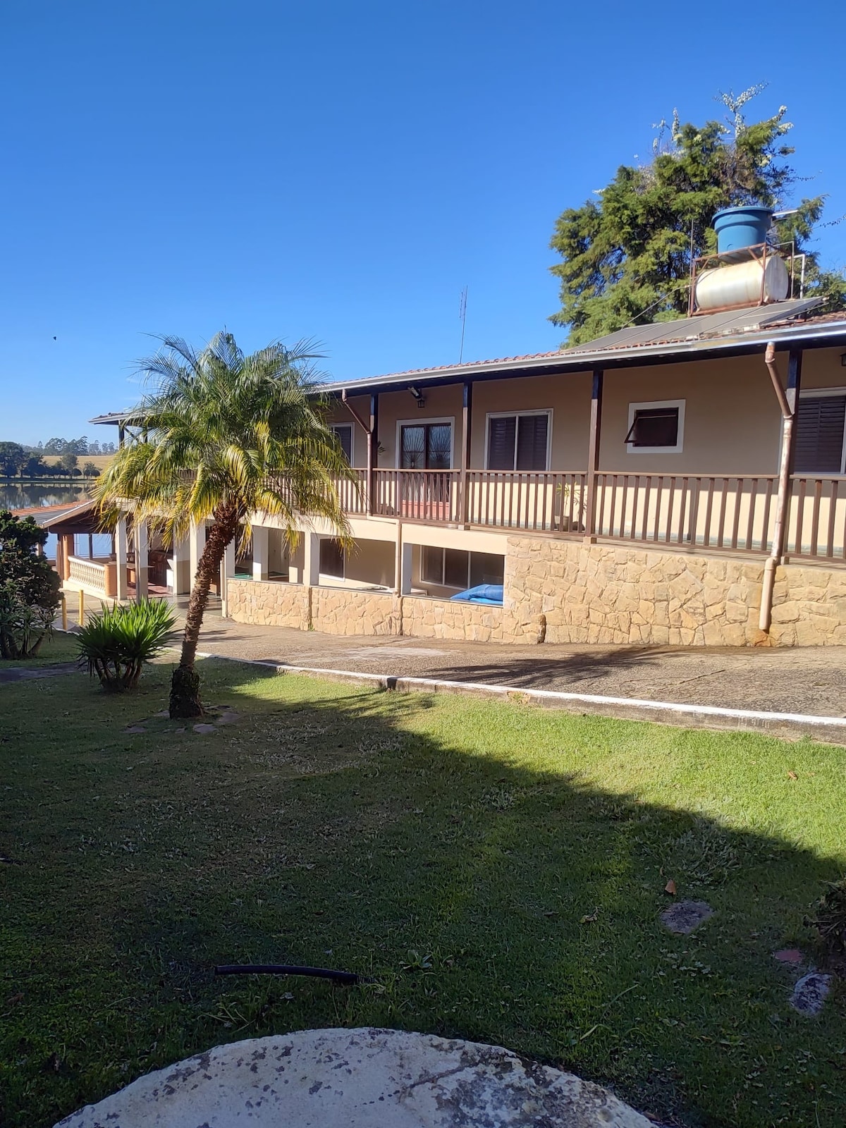 Notre ferme à Fonte a un style rustique, elle est claire, aérée, et possède la plus belle cuisine du Brésil avec une cuisinière à bois et tous les ustensiles pour cuisiner! Il dispose d'un beau jardin avec verger et fleurs. Il y a 2 suites avec lit queen size et lit simple et climatisation, 1 chambre avec 4 lits simples, ventilateur de plafond et salle de bain en face, salon avec TV 50´et Sky. Linge de lit et serviettes fournis. Il dispose d'une piscine ronde et d'un barbecue. Et un espace gourmet avec télévision, canapé, table, salle de bains et cuisine.