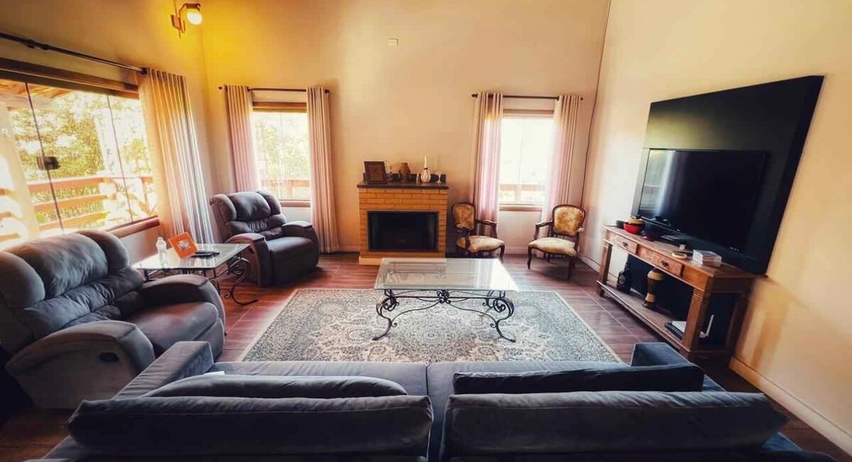 LES PRIX S'APPLIQUENT UNIQUEMENT À L'HÉBERGEMENT. CONTACTEZ-NOUS POUR LES ÉVÉNEMENTS (PLUS DE 20 PERSONNES). Il y a plus de 200 000 m2 d'espace avec un étang, la fontaine Dona Flor, un terrain de basketball, un terrain de soccer, une glissade, des balançoires, un bassin de sable, une piste de luge sur gazon, des sentiers jusqu'au sommet de la montagne avec des points de vue, ainsi qu'une salle de fête avec une autre cuisine, un barbecue et un four à pizza au feu de bois. La maison peut héberger jusqu'à 8 personnes. Nous sommes juste au bord de l'ancien volcan. Recherchez nos publications dans les médias