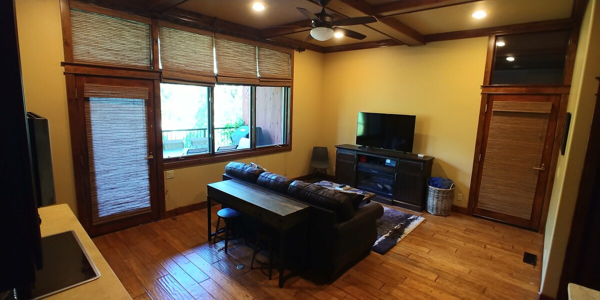 Cet appartement offre tout ce dont vous avez besoin pour un séjour confortable et prolongé dans la vallée de la Swan. Il y a un lit Queen Size avec un grand placard. Un lave-linge et un sèche-linge empilables sont disponibles dans le placard principal. Si vous avez un enfant ou deux, le futon s'ouvre pour devenir un lit complet. Le pouf s'ouvre pour devenir un lit double.