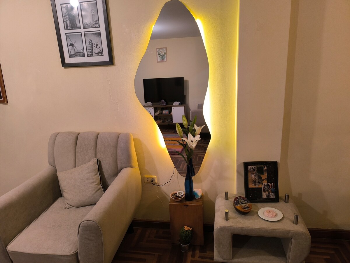 Je loue un appartement de première très confortable d'une zone de 85 M2 construction neuve et une décoration confortable et joyeuse avec un excellent éclairage et vue sur la ville de Cusco, emplacement central à 5 min. de la place d'Armes de Cusco en taxi, à proximité des banques, des restaurants, des centres commerciaux. Endroit très calme et sûr pour se déplacer. Nous vous offrons un service d'orientation touristique. Je suis sûre que vous passerez un séjour très agréable, etc.