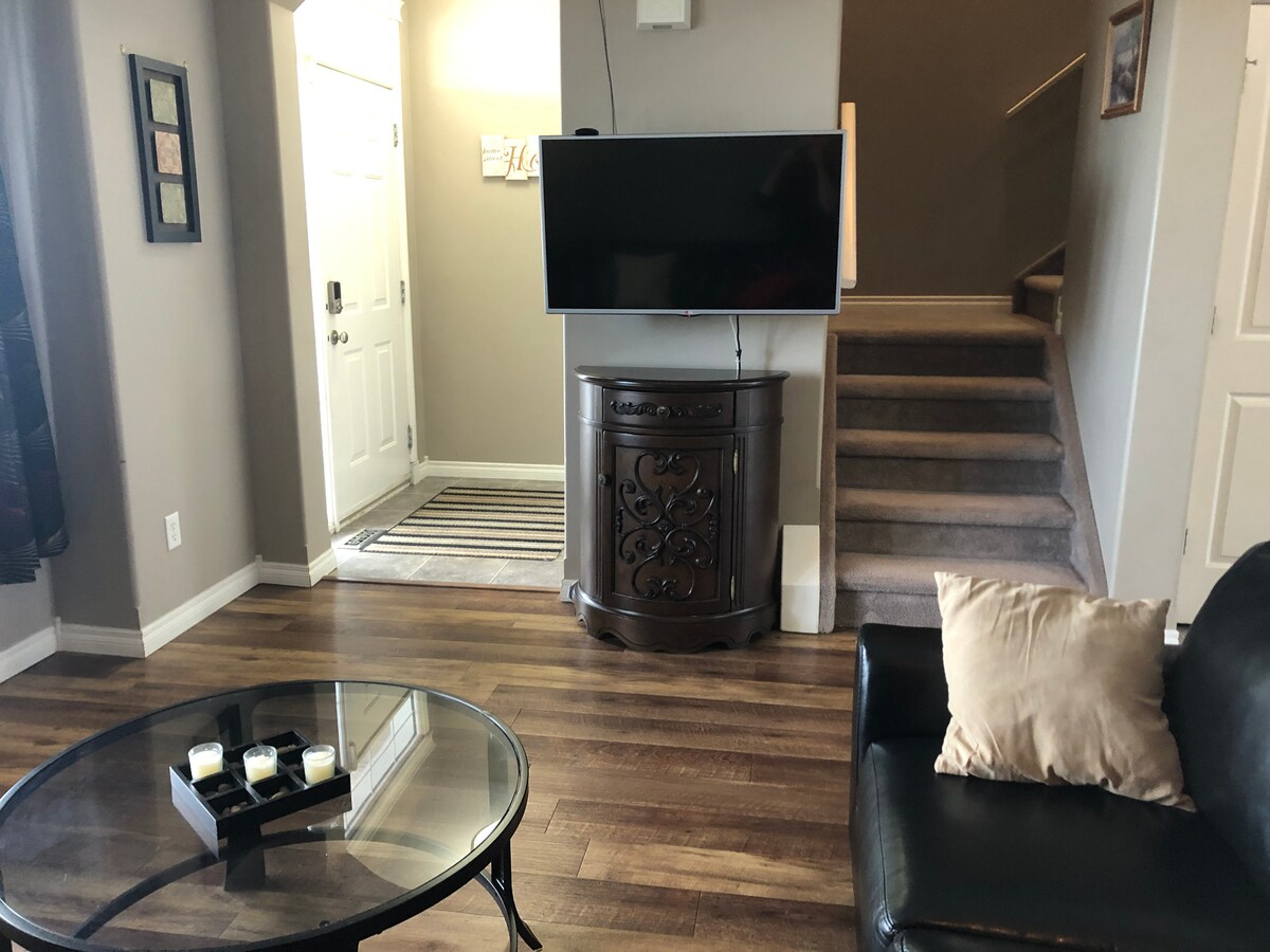 Vous entrerez dans la suite SunRise par l'arrière de la maison et il s'agit d'un logement séparé situé au rez-de-chaussée de la maison. La suite spacieuse comprend une cuisine complète et une salle de bain 3 pièces avec douche. Vous dormirez dans un lit king size dans la chambre. Au niveau inférieur, il y a aussi deux chambres Airbnb pour d'autres voyageurs. Vous aurez accès à une laveuse et à une sécheuse qui se trouvent à l'extérieur de la porte de la suite et sont partagées avec d'autres voyageurs Airbnb.