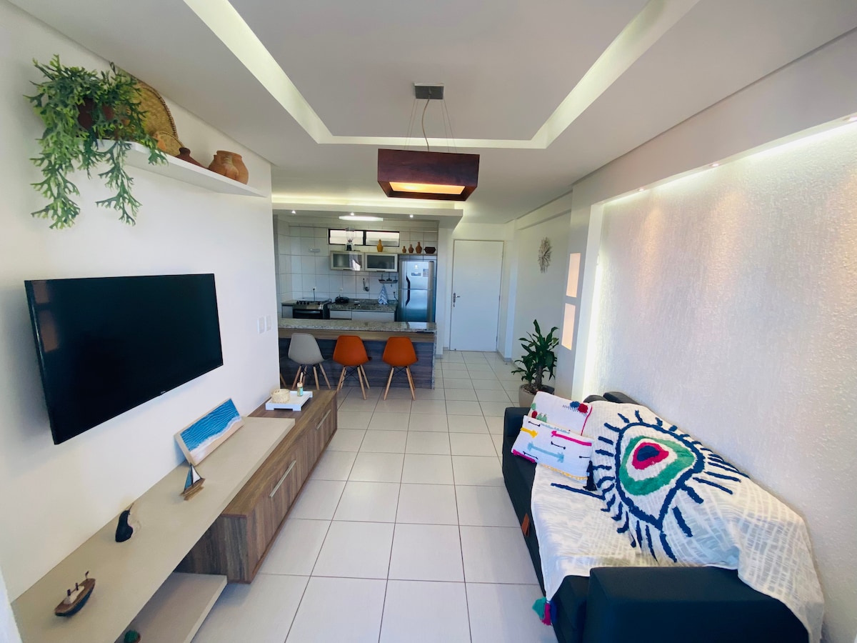 Appartement jusqu'à 4 personnes. Salon avec canapé-lit queen size, télévision par câble avec Netflix, Wi-Fi. Suite avec 1 lit double et climatisation. Linge de lit et serviettes fournis. Cuisine complète. Profitez de cet espace conçu pour transformer vos vacances à la plage en vacances de rêve ! La vue à couper le souffle, la brise qui vous apaise, unissant tout cela, tout le confort d'un appartement fonctionnel et plein de bonnes énergies ! Venez vivre cette magie, je vous attends !