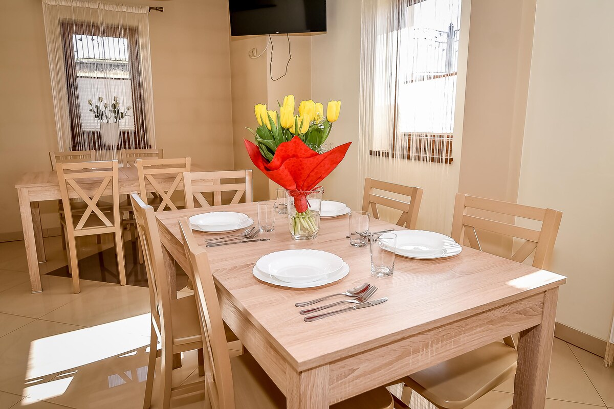 Au rez-de-chaussée de l'immeuble il y a une boutique où vous pouvez acheter du pain frais pour le petit déjeuner le matin :) Le petit déjeuner peut être préparé dans la cuisine, qui a tout ce dont vous avez besoin ! Le logement que nous louons se trouve dans l'immeuble à côté de nous. Elle dispose d'une entrée indépendante. L'ensemble du bâtiment dispose d'un total de 5 chambres. Nous sommes disponibles à tout moment. Pour les voyageurs - parking gratuit et un magnifique jardin où se détendre :)