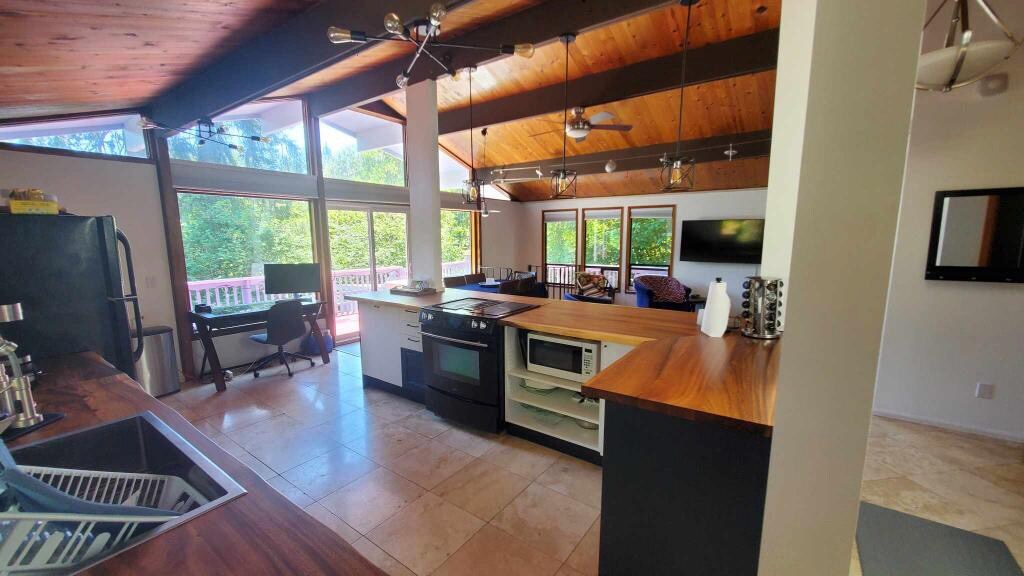 Maison spacieuse au bord de l'eau avec vue emblématique sur le mont Rainier. Des espaces confortables et uniques dans toute la maison et la propriété. L'accès au niveau de la rue comprend la chambre principale, la salle de bain, la cuisine spacieuse, le salon et la grande terrasse. La chambre à l'étage située au sommet du cadre en A évoque le sentiment d'être dans une cabane dans les arbres.