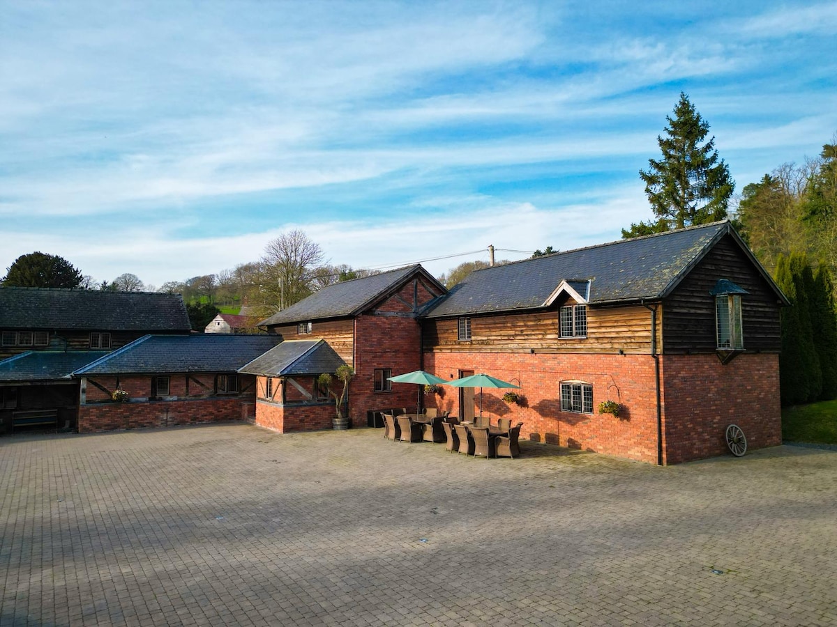 Une charmante ferme classée en bordure d'un petit village dans la spectaculaire vallée de Clun. « Wellfield Farmhouse » offre un accueil chaleureux et possède une multitude de caractéristiques d'époque. De grandes salles de réception avec poêles à bois, un salon confortable et une salle de télévision familiale offrent une gamme d'espaces pour se détendre. Une vaste cuisine voûtée est bien équipée avec toutes les commodités, y compris un AGA. Belles chambres. Jacuzzi, sauna et piscine (juin à septembre) (chauffée sur demande moyennant des frais supplémentaires). Barbecue et coin repas extérieur. Wifi.
