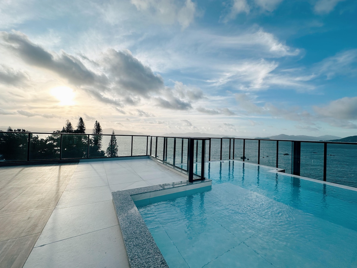 Penthouse avec vue panoramique sur une mer calme. Internet et Smart TV. Des environnements bien éclairés, aérés par la brise marine et équipés de ventilateurs. Balcon idéal pour le petit déjeuner avec la mer bleue, barbecue et un coucher de soleil à la fin de la journée parfaite pour se détendre. Appartement confortable, à proximité des restaurants, des marchés, des pharmacies et des visites touristiques. Le bâtiment dispose d'une place de parking, d'un ascenseur et d'une piscine pour les clients.