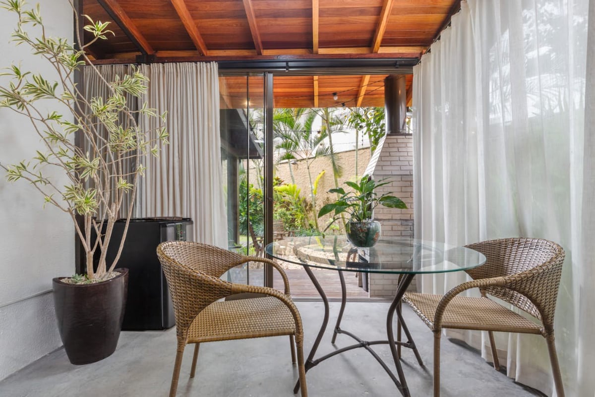 Espace luxueux et confortable, rénové en bois. Internet parfait pour ceux qui travaillent à domicile. Lit Nipponflex de haute qualité avec massage et jacuzzi chauffé à l'eau. Pour les jours de pluie ou de froid, chauffage. Le barbecue surplombe les montagnes et la mer de Santinho. Situé dans la région de Santinho. Marché et restaurant buffet en traversant la rue. Il se situe entre 3 plages paradisiaques avec plusieurs sentiers. Venez découvrir ce coin magique incroyable sur la meilleure plage de Florianópolis.