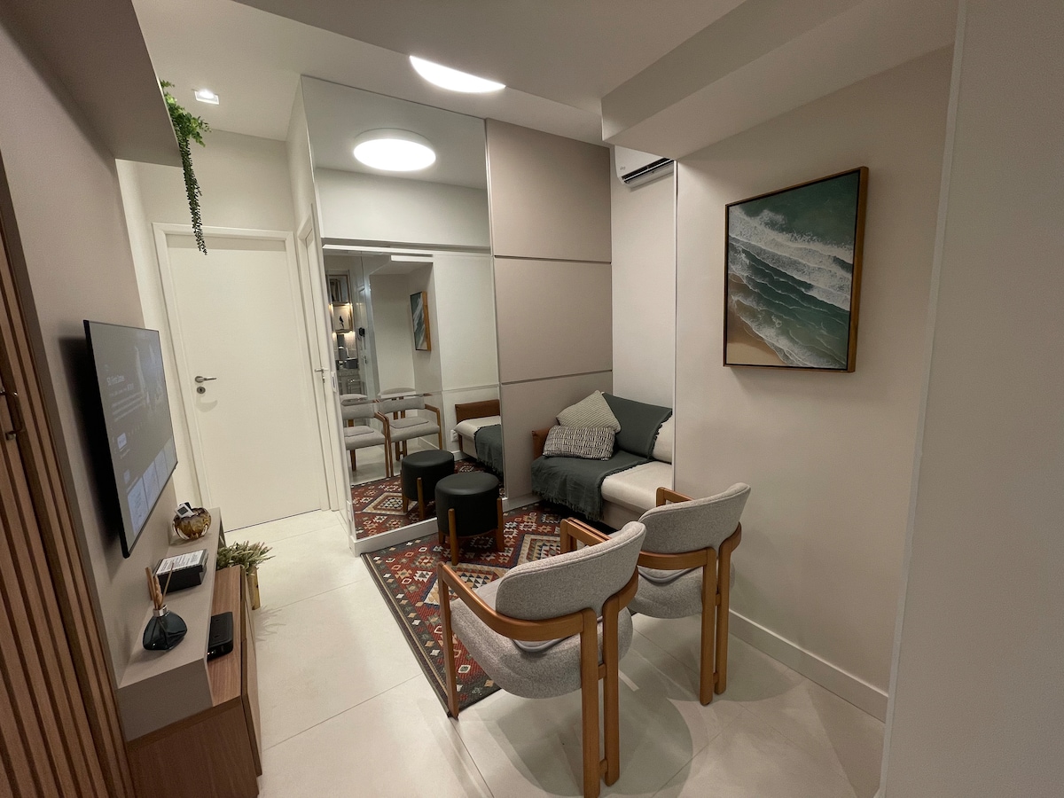 Appartement fabuleux, récemment rénové, nouveau mobilier, confortable. Situé au 26e étage avec une fenêtre du sol au plafond pour profiter de la vue sensationnelle, digne d'une affiche. Cuisine entièrement équipée, climatisation split et smart TV dans la chambre et le salon pour plus de confort. Infrastructure de la copropriété avec piscine, sauna, salle de sport, restaurant et ménage quotidien inclus dans le prix de la chambre. Super bien situé. À quelques mètres de la plage et à quelques pas du Shopping Leblon. Pour aimer et revenir !