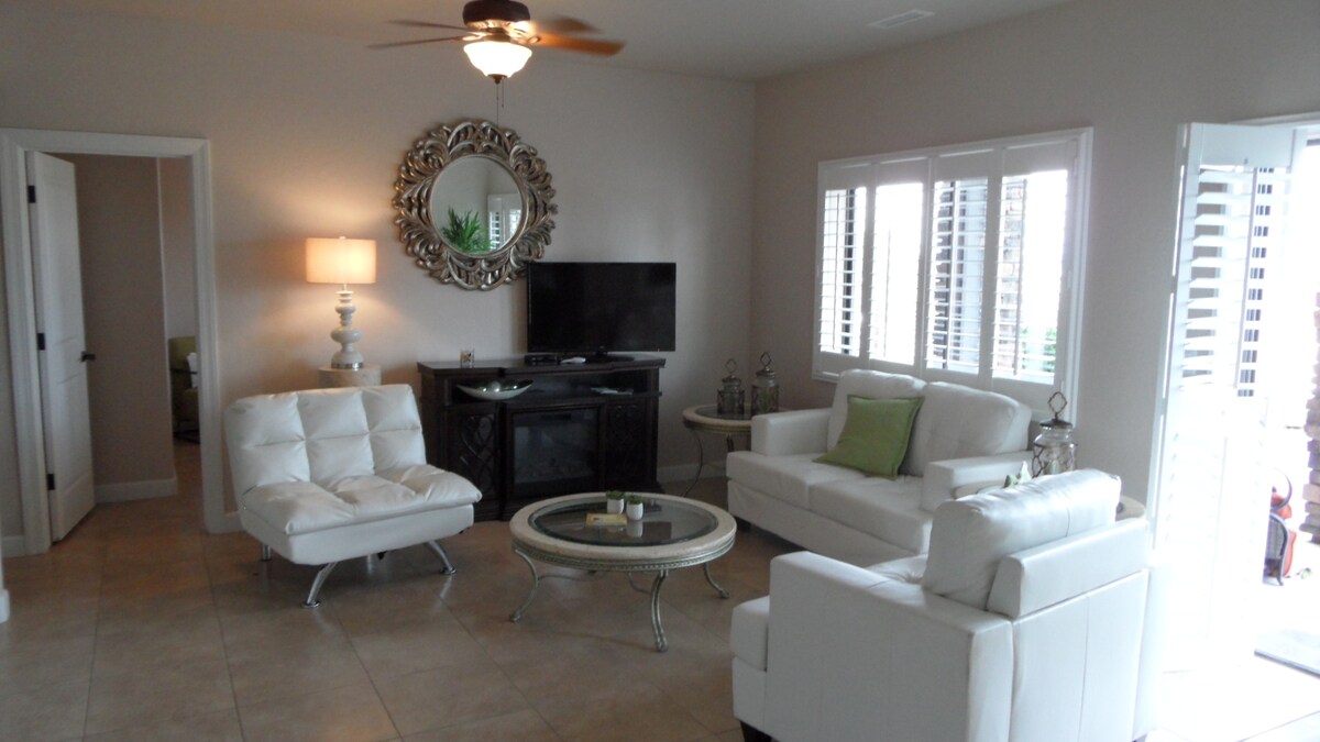 Idéalement située à un pâté de maisons du palais de justice, cette maison est nichée dans une communauté calme juste à côté de Whiskey Row (Montezuma). Il y a beaucoup d'intimité et d'isolement pour votre détente totale. Cette chambre est bloquée par rapport au reste du logement et est indépendante de elle-même. Vous avez votre propre entrée privée et une entrée à clé. Cet espace est tout simplement une oasis ! Il y a un accès direct au coin salon extérieur, où vous pourrez profiter du jacuzzi d'eau salée, du foyer en verre et du barbecue.