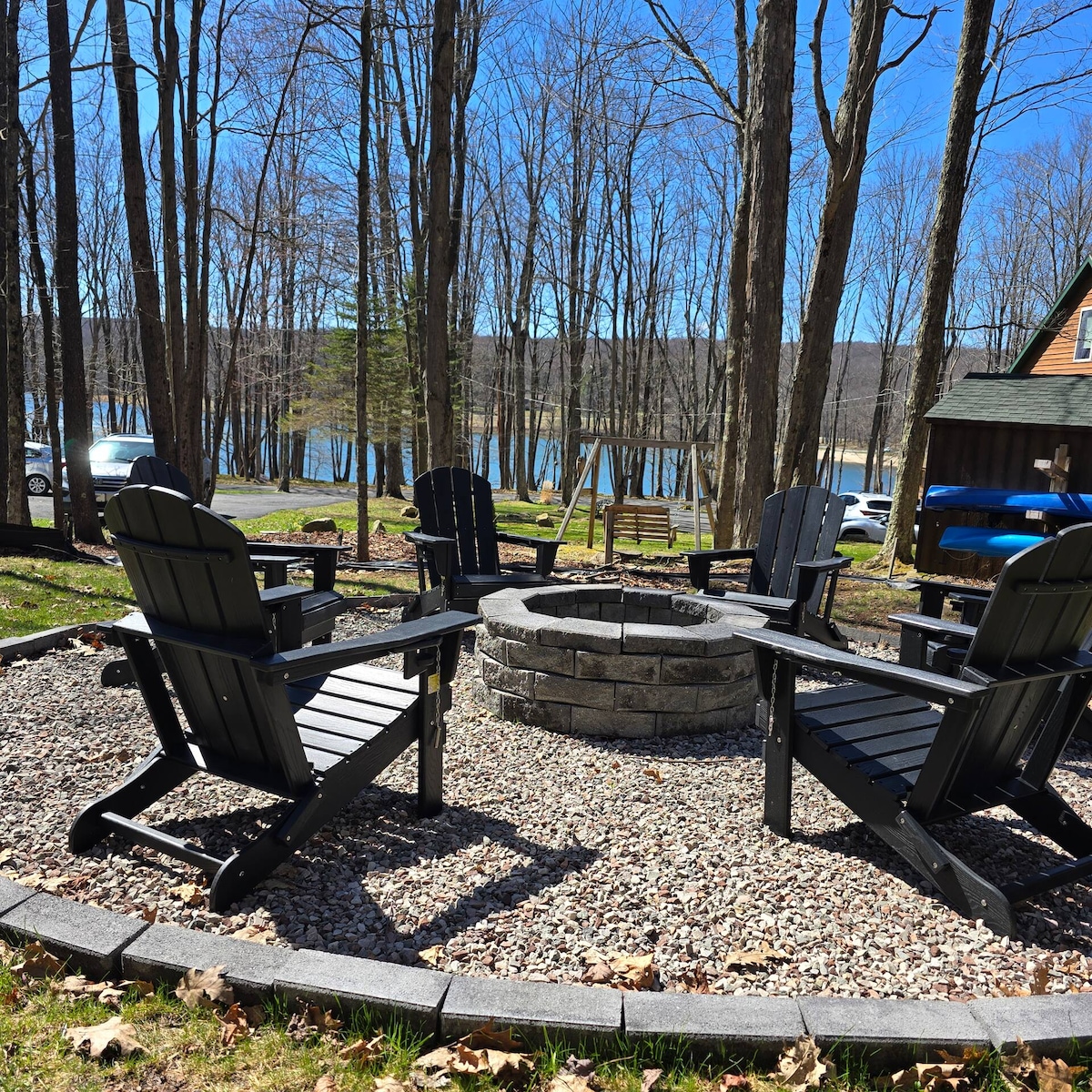 Country Roads Détendez-vous près du feu et profitez de la vue sur le lac