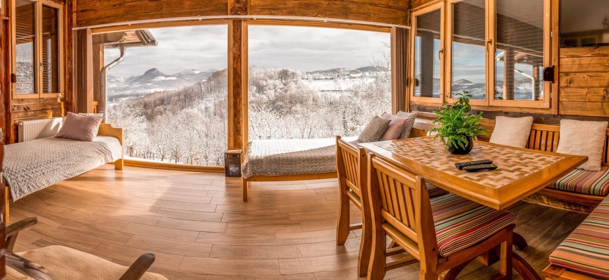 Escapade parfaite - échappez à l'agitation et ressentez un calme instantané dans notre petit chalet confortable. Vous serez entouré d'immenses vues VERTES, de vaches paissant dans un champ voisin, de grillons bourdonnant et d'oiseaux chantant. Incroyable pour les amoureux de la nature à la recherche d'un endroit tranquille où vous pourrez vous détendre dans un jacuzzi, vous détendre au coin d'un brasero, faire de la randonnée ou du VTT toute la journée, ou même faire de l'équitation dans de merveilleuses collines vallonnées de la montagne Tometino Polje/ Maljen.