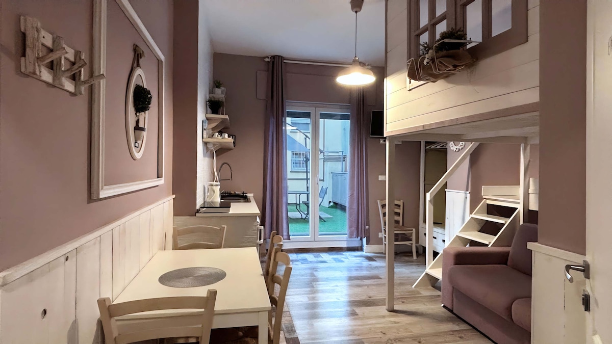 Cet appartement fascinant frappe immédiatement par son style moderne et accueillant, agrémenté de poutres apparentes et d'un filet suspendu sur la mezzanine, parfait pour se détendre en lisant un livre ou même dormir. Le salon est spacieux et lumineux, avec un plancher en bois et un mobilier soigneusement détaillé, y compris un canapé-lit blanc confortable et une salle à manger élégante.<br><br>