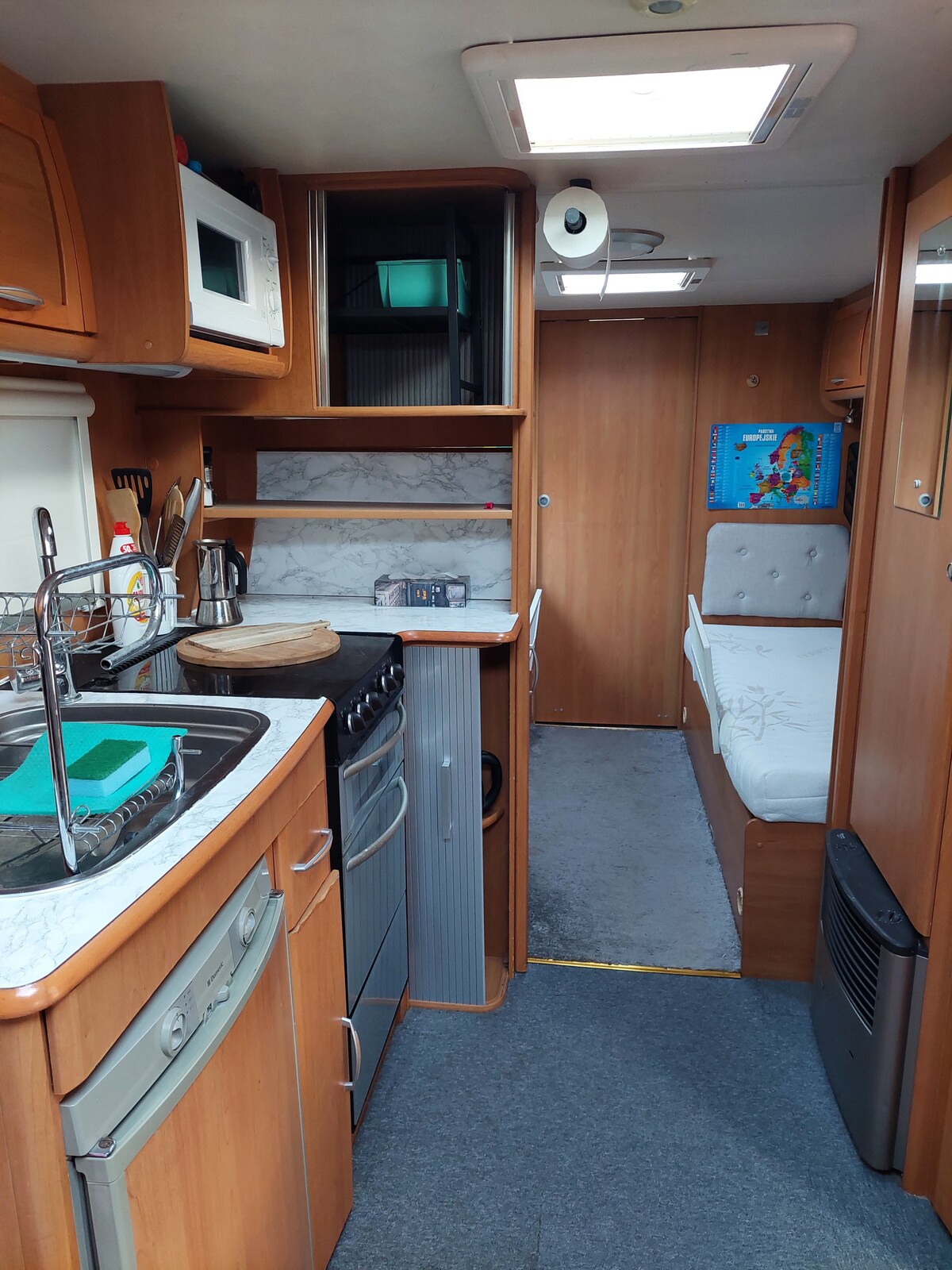 Je propose une caravane spacieuse et confortable à louer, parfaite pour une escapade de vacances au bord de la mer. La caravane est située sur le pittoresque camping Kashubian à Dębki, à quelques minutes à pied de la plage. Détails de l'annonce : - 4 espaces de couchage - Cuisine entièrement équipée (réfrigérateur, plaque, vaisselle, vaisselle) - Cabinet de toilette - Un endroit pour se détendre dans le vestibule, ou à l'extérieur (table, chaises) - Accueil des animaux de compagnie Réservez un séjour ici et détendez-vous dans la nature.