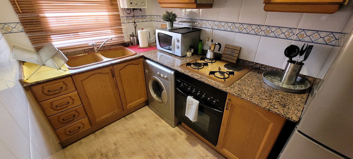 Appartement avec beaucoup de lumière, calme et la terrasse avec une belle vue sur la mer et les piscines. Il dispose de courts de tennis, d'un court de fronton, d'un jardin d'enfants, d'un jardin et d'un club social et pendant les mois d'été, nous avons également un bar-restaurant ouvert. Très proche de la plage (à 3 minutes à pied de la plage) Accès direct depuis l'autoroute V21 et à 12 minutes de Valence en voiture.