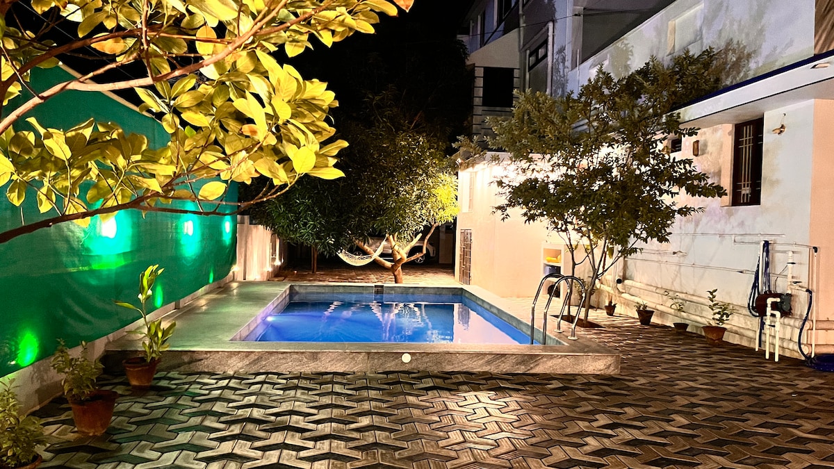 Bienvenue dans notre villa 🏊🏻♀️ 2BHK avec piscine intérieure privée – votre escapade ultime à Pondichéry! 🛌 Conçu dans un style balinais serein 🛖 avec des tons terreux, des vibrations tropicales 🌴 et un confort moderne, c'est le mélange parfait de luxe et de détente. Plongez dans votre piscine privée (accessible 24 h/24 et 7 j/7) ⏰, profitez d'un long bain dans la baignoire 🛁ou sirotez un cocktail au bord 🥂 de l'eau ✨ et plongez vraiment dans l'état d'esprit des vacances! 🥳