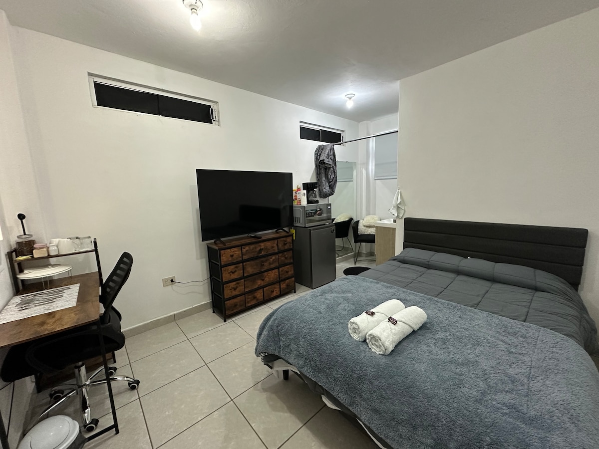 Loft confortable dans une communauté fermée privée, parfait pour se détendre après une longue journée. À l'étage, vous trouverez un lit double, un grand placard, des fenêtres donnant sur le jardin et une terrasse privée. En bas, il y a une cuisine entièrement équipée, une salle de bain complète, une laveuse/sécheuse, un canapé-lit et une chaise longue. Parfait pour des séjours courte durée ou prolongés. Si vous voulez découvrir la véritable hospitalité mexicaine, c'est l'endroit idéal.