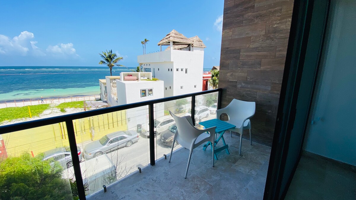 Seaside Escape: Rooftop Studio with Stunning Views 🌊 Experience the best of Playa! This modern rooftop studio offers breathtaking ocean views and a fresh Caribbean breeze. Located in the exclusive hotel zone (next to Hyatt Vivid), you’re steps from 5th Ave. Relax on your spectacular private terrace, featuring a secluded outdoor tub (ambient temp) overlooking the sea—perfect for couples! ⚠️ Note: Access involves 16 stairs; not suitable for guests with mobility impairments.