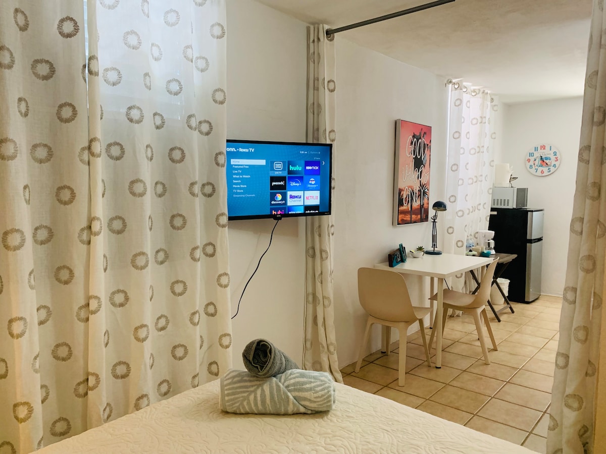 « Studio pour couples à 2 minutes de la plus belle plage de Porto Rico » Ce studio est parfait pour les couples à la recherche d'un endroit confortable et privé pour profiter de la plage. Il est situé à seulement 2 minutes à pied de la plus belle plage de Porto Rico, ce qui le rend idéal pour ceux qui veulent passer du temps à la plage. En outre, il y a plusieurs restaurants et autres commodités à proximité qui pourraient intéresser les clients.