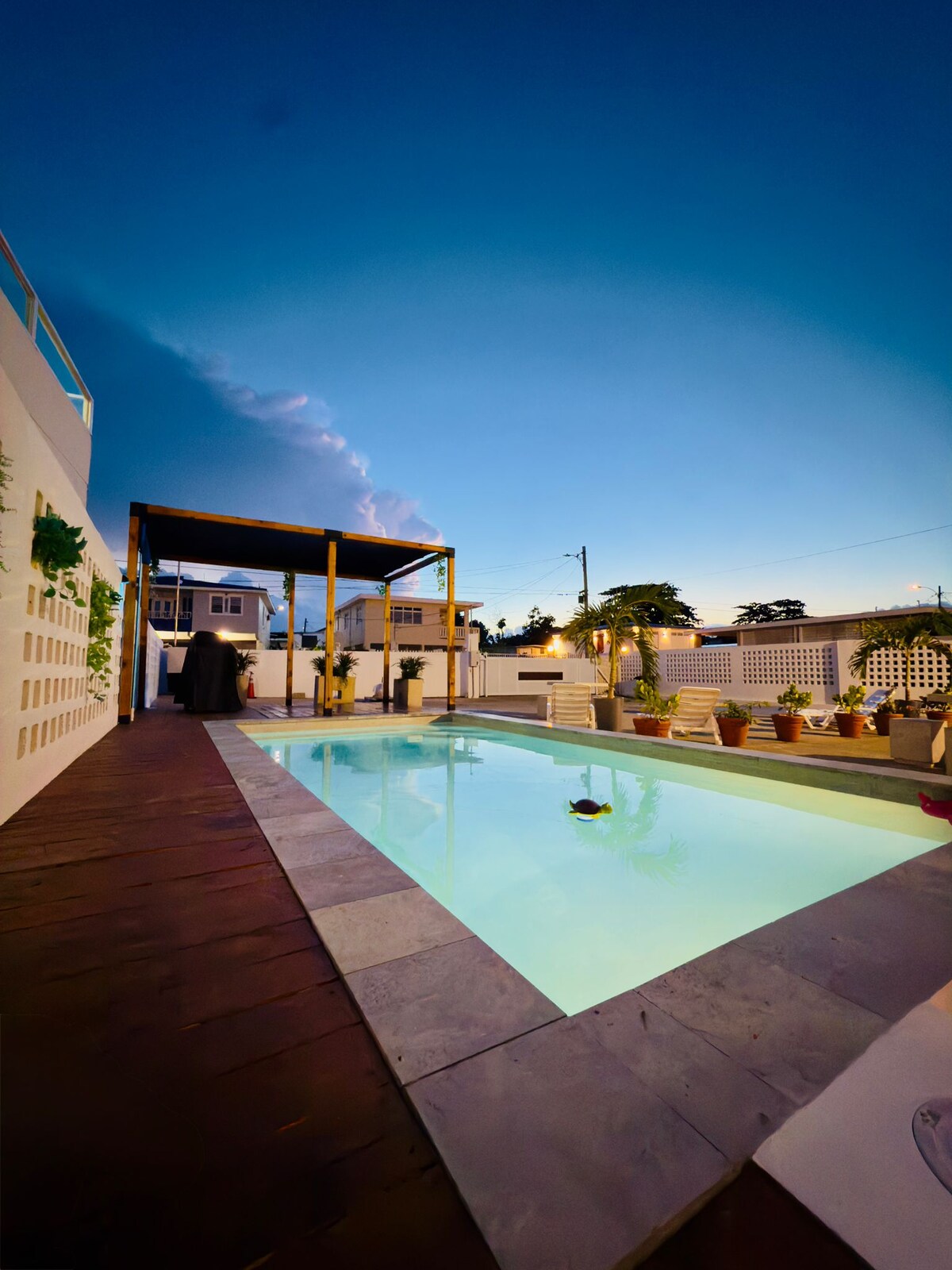 Venez découvrir les sons des vagues de l'océan et les magnifiques couchers de soleil dans la paisible Sunset Villa. Nous offrons un grand espace extérieur où vous pourrez cuisiner des repas de style familial, vous détendre sur un hamac confortable et/ou vous baigner dans notre piscine spacieuse. L'étage offre une autre cuisine, un salon et un espace de couchage pouvant accueillir jusqu'à 9 personnes. Vous êtes à 3 min en voiture de l'entrée de la plage et avez une variété de restaurants à proximité. Vous obtenez la solitude de votre propre maison tout en faisant partie de la vie de plage de Porto Rico !