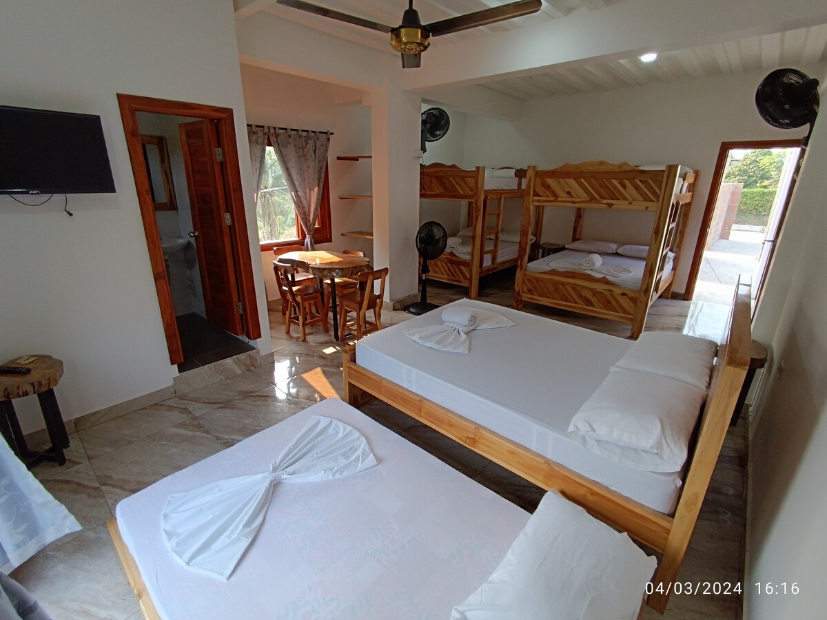 Vous et votre groupe serez situés dans l'un des plus beaux quartiers de Doradal, le quartier La Aldea Doradal, plus connu sous le nom de « El Santorini Colombiano ». Cette cabane est située au deuxième niveau avec accès par des escaliers. À proximité des supermarchés, des restaurants et des lieux touristiques de la région. Profitez de votre repos dans ce chalet confortable. À seulement 1 km du parc à thème Hacienda Nápoles et à 19 km de la réserve naturelle de la rivière Claro.