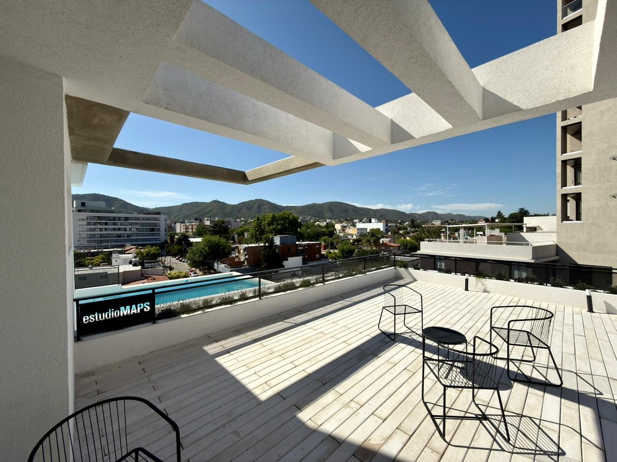 Grâce à son emplacement idéal, et aux commodités et installations conçues pour le client, vous pourrez profiter d'un séjour idéal pour vous détendre et profiter de la belle vue sur la montagne depuis le balcon et encore mieux, depuis la terrasse, en plus de la vie nocturne que vous offre la ville de Villa Carlos Paz.