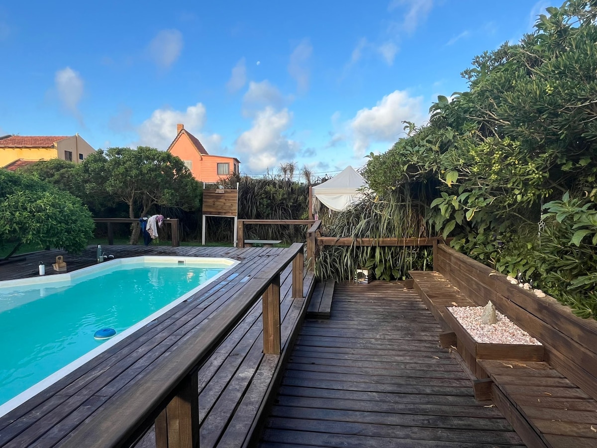 Iona Lis est située dans la partie sud de Punta del Diablo à seulement 600 mètres de la mer, Playa De La Viuda. La maison présente une fonctionnalité et une disposition qui accompagnent le bon passage de ses invités en hiver comme en été. Son style et sa simplicité en font un séjour chaleureux et accueillant pour les familles, les couples et les groupes d'amis. Avec ses couchers de soleil magiques, entre le chant de l'océan et la brise de la lagune, vous passerez un séjour unique, entouré par la nature et de bons souvenirs.