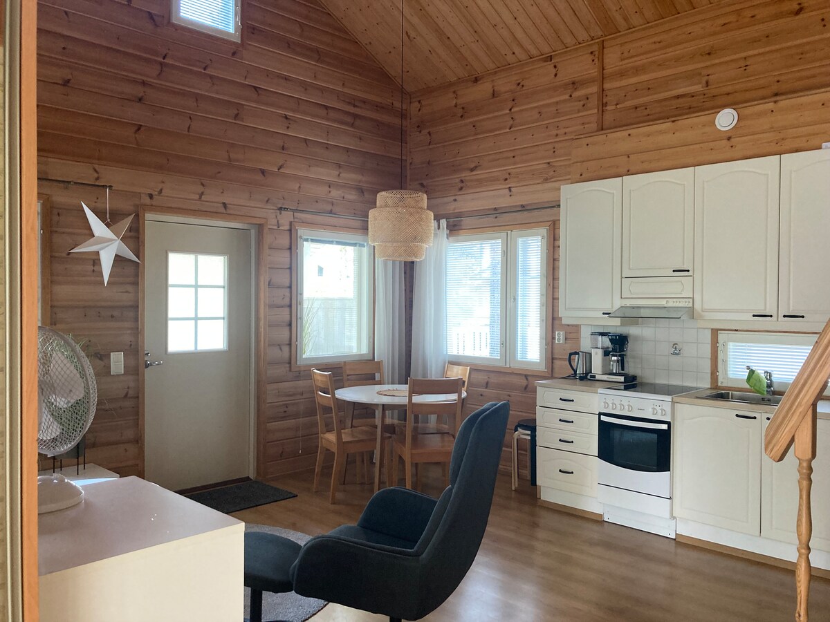 Un studio dans un garage. Une kitchenette avec deux assiettes, un réfrigérateur(congélateur), un micro-ondes, une cafetière, une bouilloire électrique et de la vaisselle de base. Les draps et les serviettes sont fournis. Douche dans les toilettes, notez le chauffe-eau de 30 litres, il y a suffisamment d'eau chaude pendant environ 5 minutes. La voiture peut être chargée ou chauffée à partir des prises murales. Four et lave-vaisselle manquants. Réservation instantanée, si vous pouvez réserver, vous pouvez rester sans ma réponse L'emplacement est très central. À la route 86 à 10 km, à la route 4 voies 50 km, à la route 8 à 50 km, à Helsinki à 530 km et à Levi 480 km.