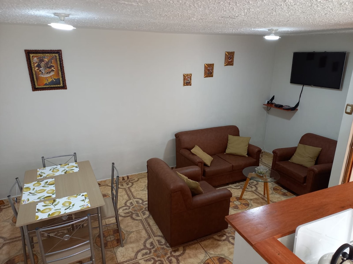 Bienvenue dans mon studio à Cusco. Cet espace est parfait pour ceux qui recherchent un hébergement confortable et pratique tout en explorant notre ville animée. Le studio a récemment été rénové et dispose d'un décor moderne et élégant. Le studio est situé dans le centre-ville, à proximité des restaurants, des boutiques et des attractions touristiques. J'espère que vous apprécierez votre séjour dans mon studio autant que j'ai aimé créer cet espace pour vous. Bienvenue chez vous !