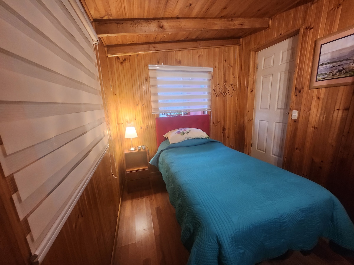 Visitez Quellón depuis la tranquillité de la nature 🌳 À quelques minutes de la station balnéaire de Punta de Lapas, ce chalet familial confortable est entièrement équipé ! Il dispose d'une chambre avec un lit double et un lit simple dans le salon (avec la possibilité d'un lit gigogne pour 2 personnes), d'une cuisine, d'une salle de bains avec eau chaude, d'une télévision par satellite, d'un parking privé avec portail, d'une caméra de sécurité 24 h/24 et 7 j/7 et du silence et de la paix de Chiloé. Idéal pour déconnecter et profiter de cet environnement naturel 🏞