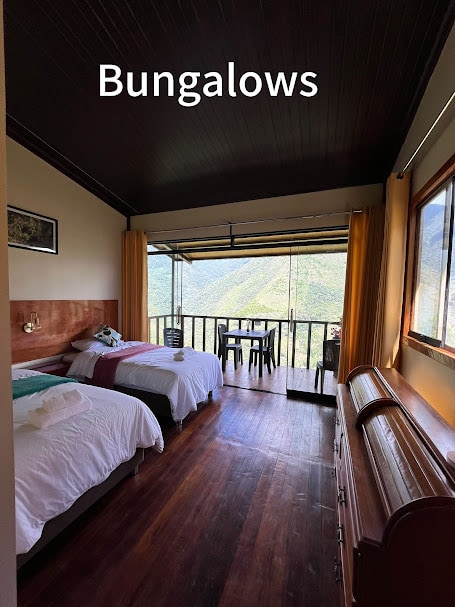 Profitez du confort et de l'intimité d'un bungalow complet, idéal pour les familles de quatre personnes maximum. Le rez-de-chaussée dispose d'un lit double et l'étage supérieur de deux lits simples, tous deux avec une vue imprenable sur les montagnes environnantes. Parfait pour les familles qui veulent se déconnecter et explorer ensemble. L'écolodge propose des activités d'aventure : randonnée, vélo de montagne, canyoning et escalade. Restaurant sur place avec une excellente cuisine locale. Il y a aussi du café local de qualité et des ateliers.