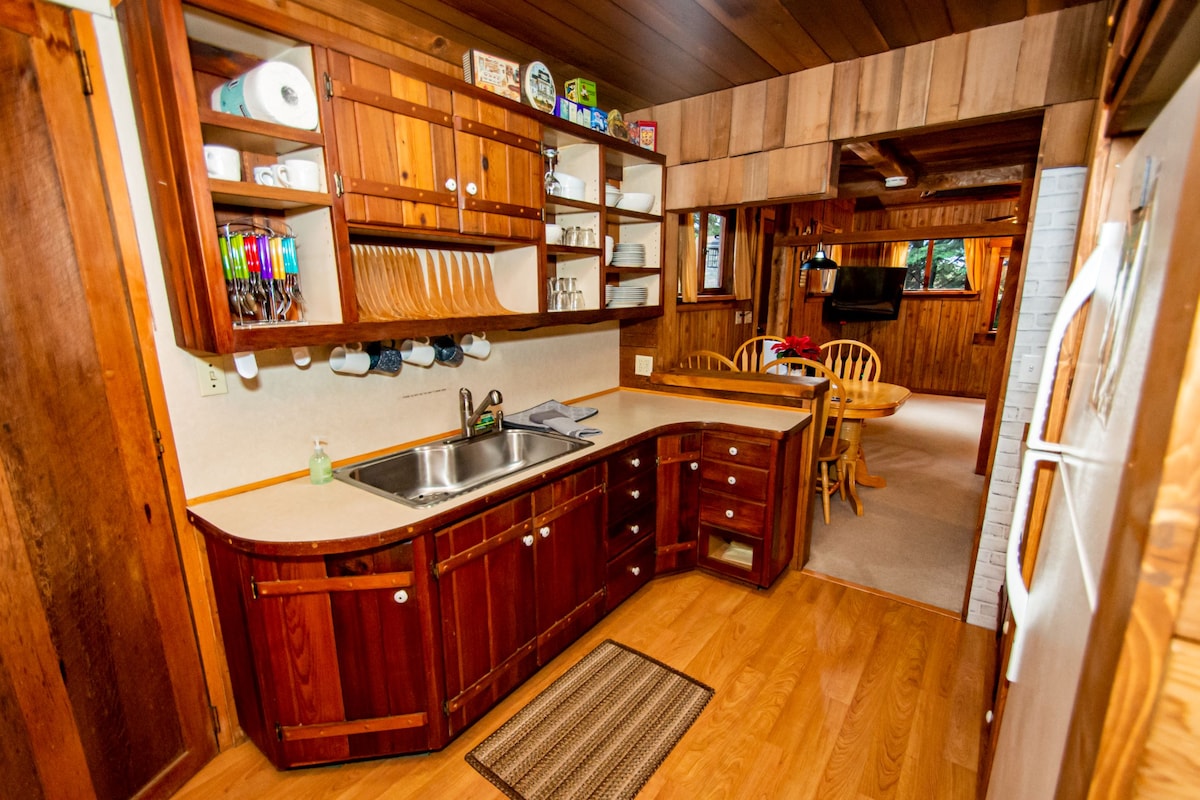 Le Cozy Coho est situé à seulement 3 miles de Rialto Beach, ce refuge secret est l'endroit idéal pour se rafraîchir et se détendre. Les murs intérieurs sont en cèdre... et sentent merveilleusement bon ! Cette petite maison studio unique dispose d'un lit Queen Size et d'un lit double mezzanine pour dormir. La cuisine comprend une cuisinière à gaz, un four à micro-ondes, un Keurig, un grille-pain, des casseroles et des poêles, et plus encore ! La jolie salle de bain dispose d'une douche et de toilettes. Profitez du foyer extérieur entouré d'arbres et du son lointain des vagues qui se brisent.