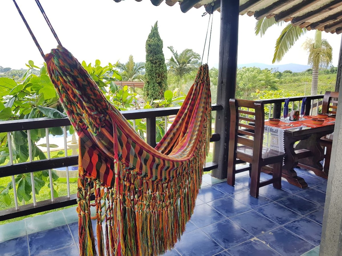 Located in the beautiful mountains of Quimbaya , Quindio , Colombia, Chalet Alto Bonito is a lovely place to visit and stay. Its rooms are comfortable , private, safe and impeccable. They are equipped with HD TV, a small refrigerator , an air fan , an audio system , a private bathroom with hot water and a terrace adorned with exotic plants and flowers . Estamos a 50 metros del Parque temático los Quimbayas