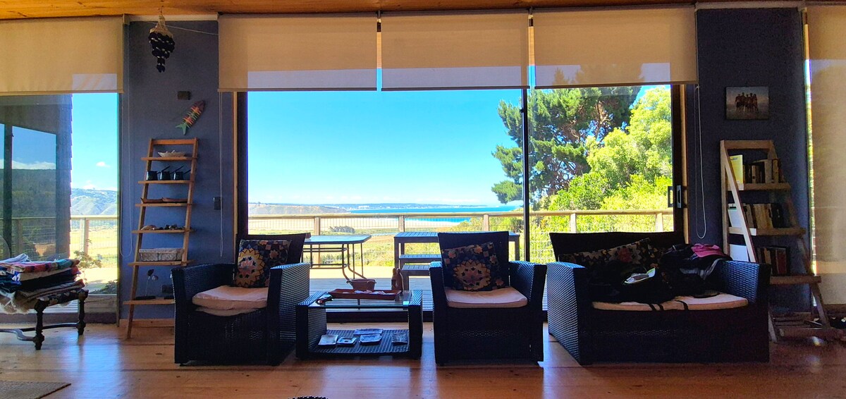 Située à La Boca, cette maison écologique offre une vue imprenable sur la plage de Tunquén, la vallée et les zones humides protégées, entourée d'une nature qui invite à la paix, au repos et à l'observation de la faune. Spacieuse et confortable, la maison peut accueillir jusqu'à 7 à 8 voyageurs et fonctionne à l'énergie propre et renouvelable. À seulement 90 minutes de Santiago et à 45 minutes de Valparaíso, c'est une escapade idéale pour ceux qui recherchent la tranquillité, la nature et une vue imprenable sur l'océan.