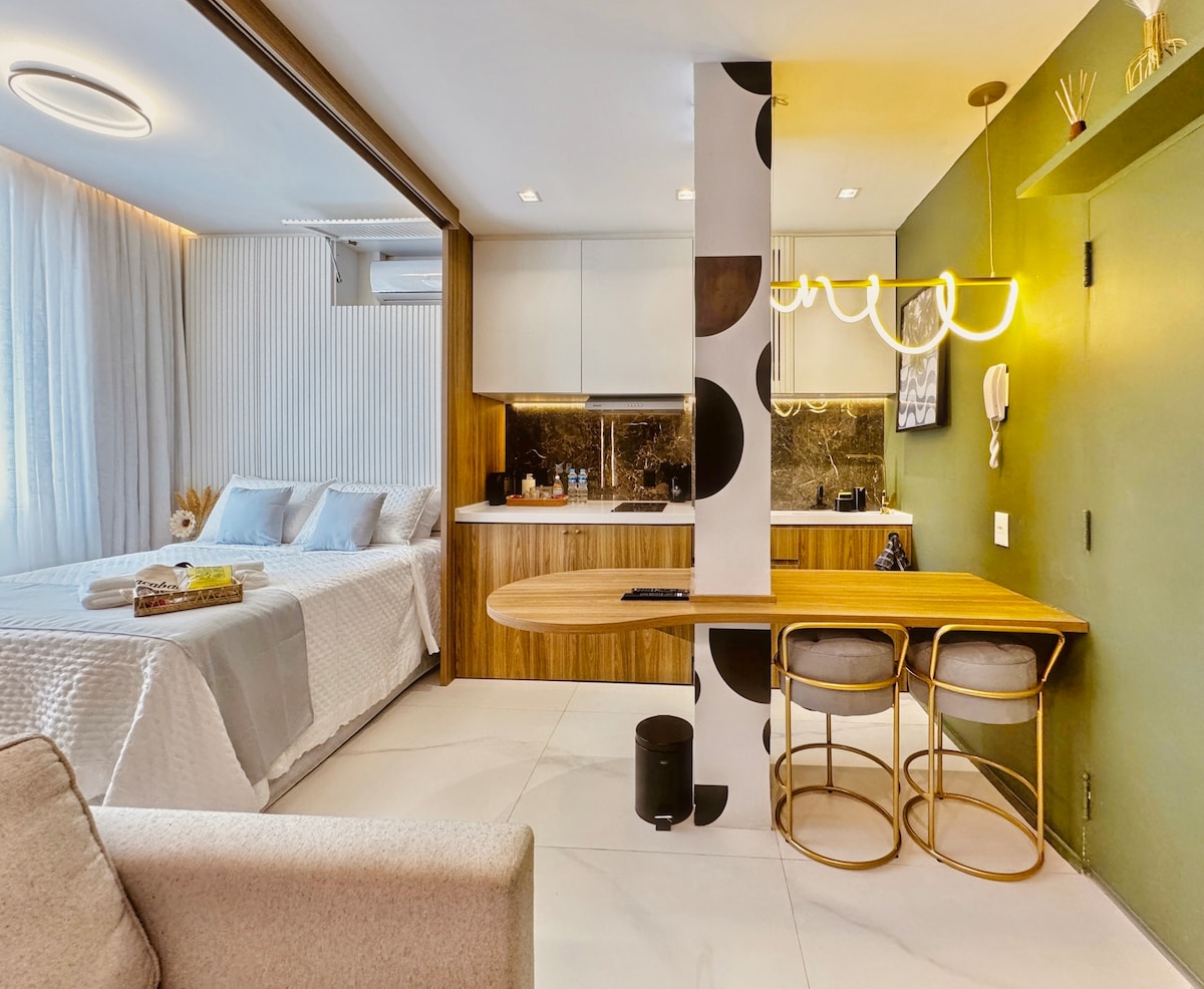 Appart-hôtel à l'Atlântico Flat Service, sur le front de mer. Réception 24h/24. La propriété peut accueillir confortablement 2 personnes et peut atteindre 4 personnes. Le site comprend un espace de stationnement pour les petites voitures, sous réserve de disponibilité. Si vous n'y parvenez pas, il y a des places de la mairie dans les rues ou des garages couverts à proximité. En réservant votre séjour chez nous, vous déclarez avoir lu les informations d'hébergement dans la description de l'espace, et les règles de la maison, acceptant ainsi ce qui a été établi.