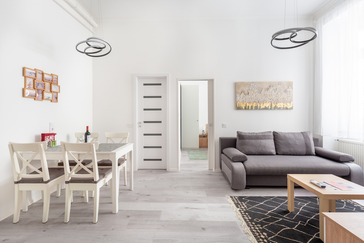 Si vous êtes à la recherche de l'appartement parfait à Budapest, ne cherchez pas plus loin ! Superbement conçu et construit avec des matériaux de haute qualité dans le centre même. • Appartement conçu et construit par des professionnels avec uniquement des matériaux et des meubles de haute qualité et luxueux ; • Grande chambre avec un magnifique lit king-size et un coin lecture + une télévision à écran plat. • Séjour séparé avec un canapé. • Le meilleur quartier de Budapest - Tous les sites touristiques sont accessibles à pied.