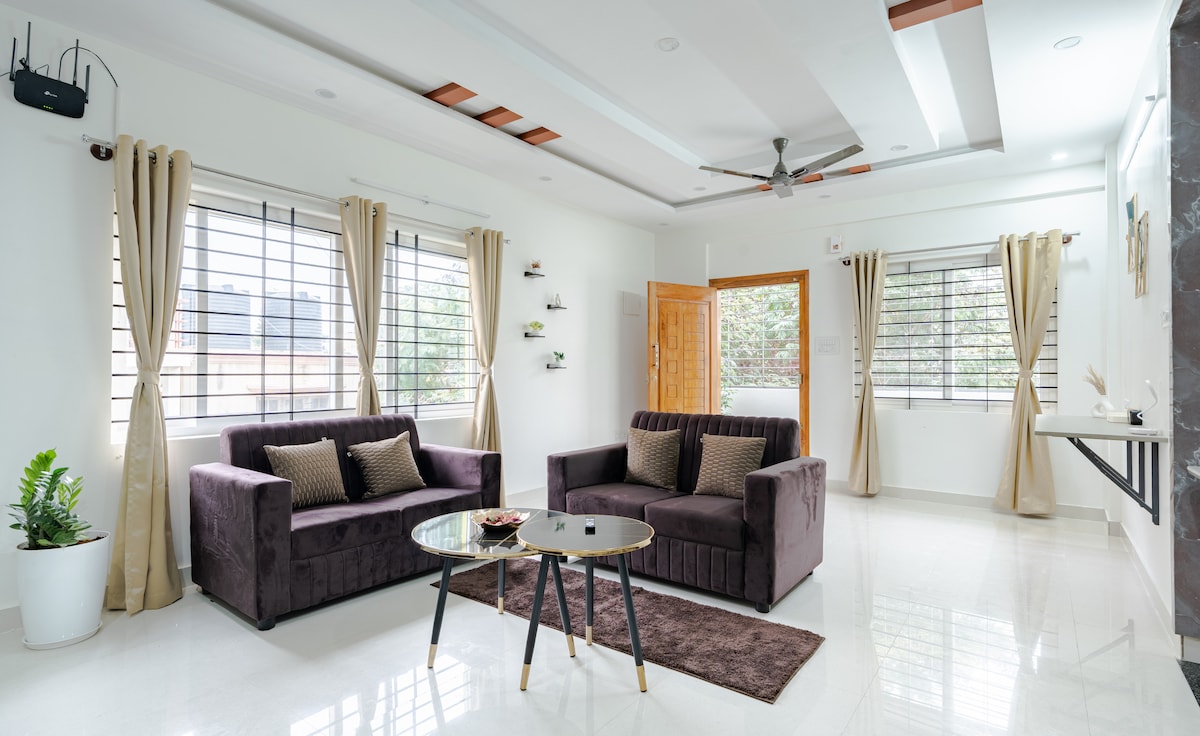 Welcome to our Lakeview apartment! Experience modern comfort in Bangalore's serene setting. Relax in our cozy 2 BHK flat with AC (in one bedroom). Enjoy seamless streaming with 100mbps WiFi. Enjoy the convenience of free car parking, available inside the premises, making your commute effortless. Indulge in complimentary tea and coffee, and rest on premium mattresses with quality linens. Shampoo and body gel are provided for a worry-free stay. Enjoy comfort and convenience at its best!