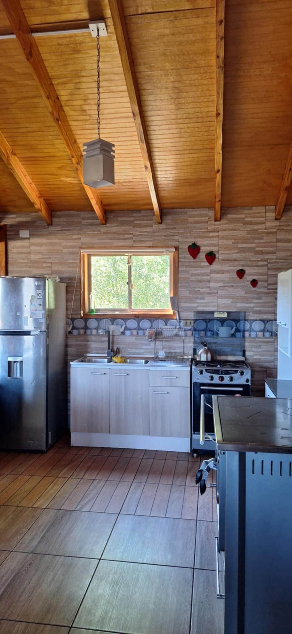 Nous vous invitons à passer quelques jours à Los Cachorros, qui se trouve sur la côte du Rio Quillen et à 1 000 m de la confluence entre le Rio Quillen et le Rio Alumine. La cabane dispose de deux chambres, l'une avec trois lits simples et l'autre avec un lit double, ainsi que d'un fauteuil-lit dans le salon. Il dispose d'une cuisine entièrement équipée et d'une salle d'eau confortable et complète. Une cour avec un barbecue, une table et des chaises sont à disposition pour être à l'extérieur. Un service de nettoyage est proposé.