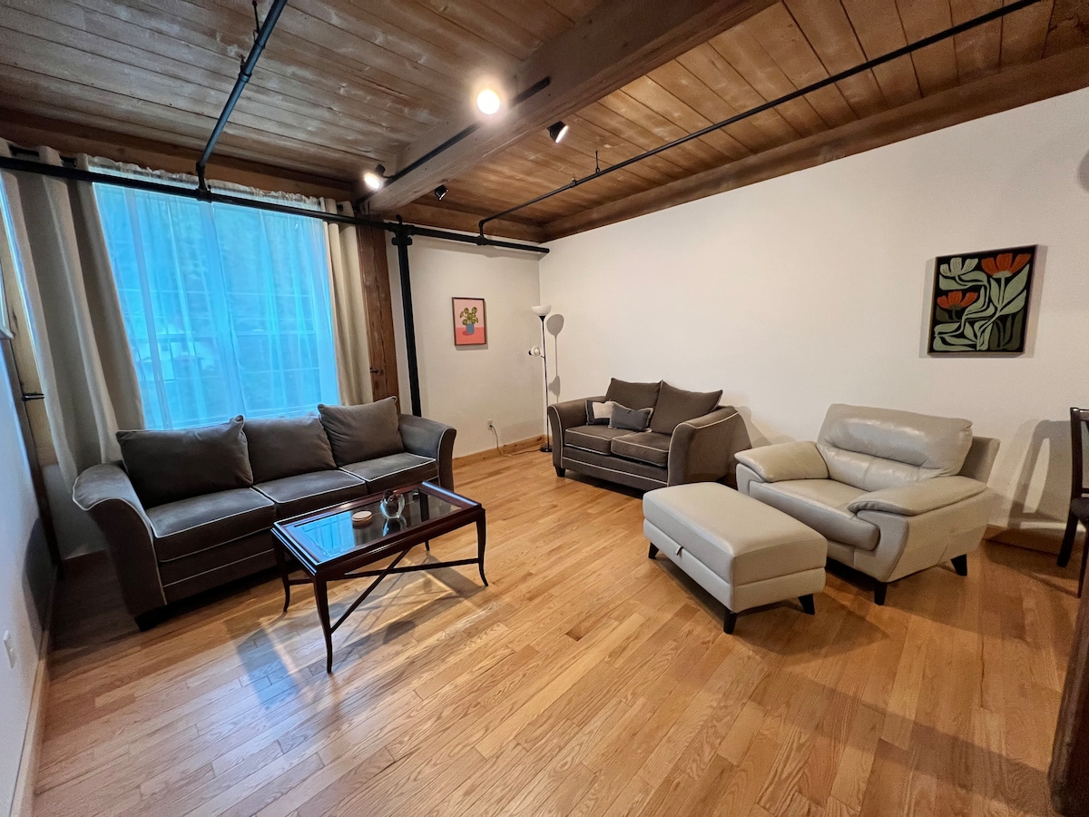 Profitez de cet appartement confortable et récemment rénové, dans le bâtiment original « Main Street Market and Provisions » dans le centre-ville de Rangeley, Maine. Cet espace est parfait pour une famille de 4 personnes avec une chambre queen size et des lits jumeaux/superposés, avec tous les nouveaux appareils, lave-vaisselle et lave-linge/sèche-linge. À distance de marche de tous les commerces et restaurants, à 9 miles du pied de la montagne Saddleback. Nous sommes juste en face de la descente publique pour bateaux au parc du lac Rangeley avec des courts de tennis, une aire de jeux et une plage de baignade.