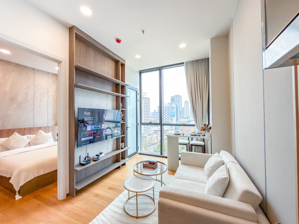 🏙️ Experience Bangkok in Style Stay in a brand-new 2025 luxury high-rise in Siam, just 5 minutes walk to Siam Paragon and steps from CentralWorld, Platinum Mall, MBK & Siam Square. 🛋️ 1-Bedroom City View Suite with queen bed, modern bathroom, kitchenette, Smart TV & ultra-fast Wi-Fi (500/500 Mbps). 🌇 Infinity pool, gym, yoga area & co-working lounge. 📍 Walk to BTS Siam & Ratchathewi. Perfect location for shopping, dining & exploring Bangkok.