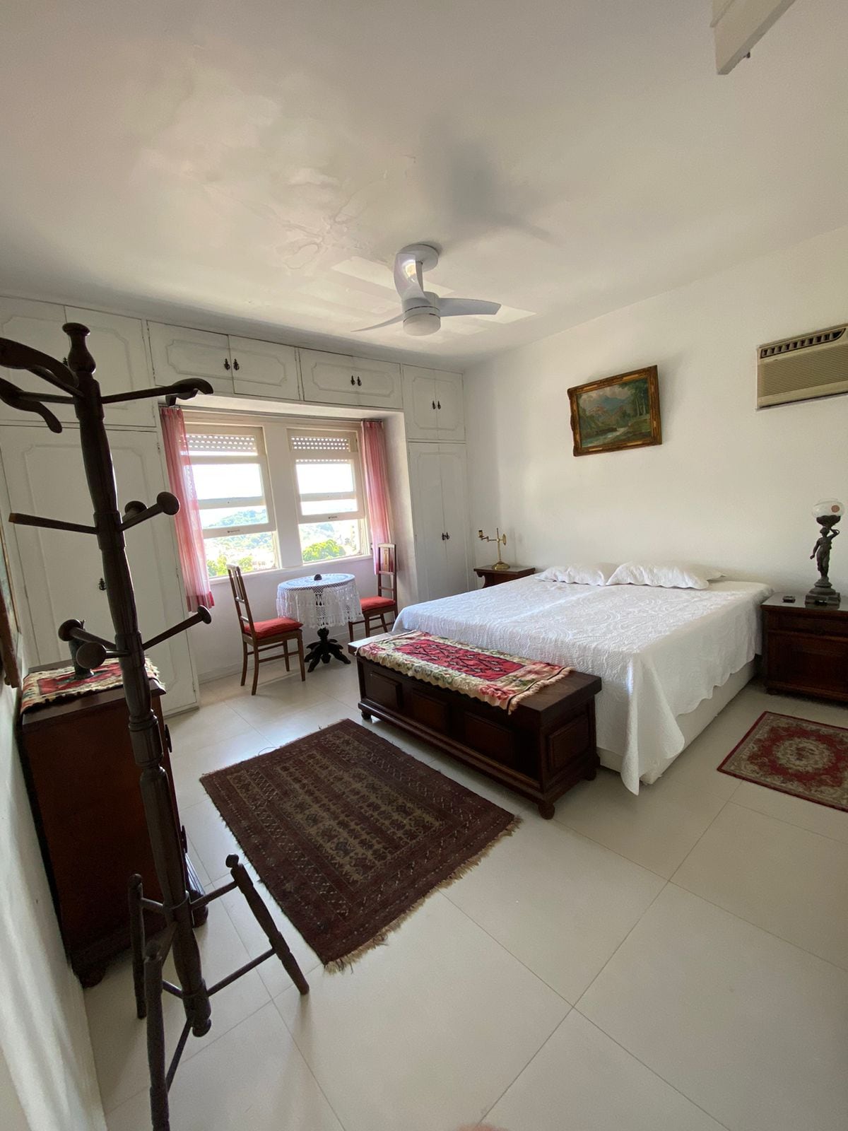 Détendez-vous dans ce logement calme et élégant, à la vue imprenable sur le Pain de Sucre et la baie de Rio. Nichée sur la colline de Santa Teresa et juste au dessus du quartier de Laranjeiras, notre maison vous permettra de vous reposer complètement, en famille ou entre amis, au milieu d'une carte postale Carioca. Si certains souhaitent travailler, un espace leur est dédié. Mais là aussi, là vue est incroyable. Un gardien et une employée de maison travaillent quotidiennement à la maison.